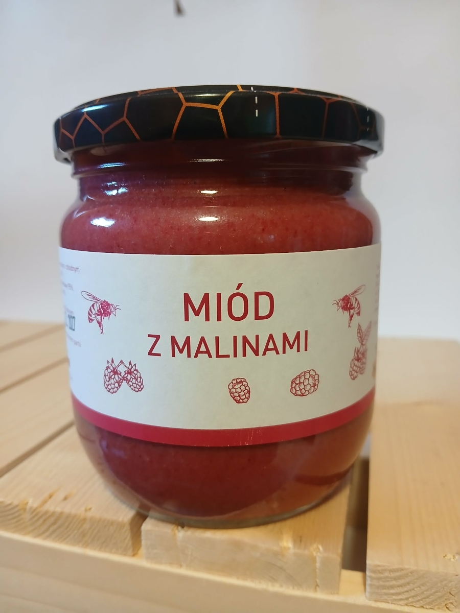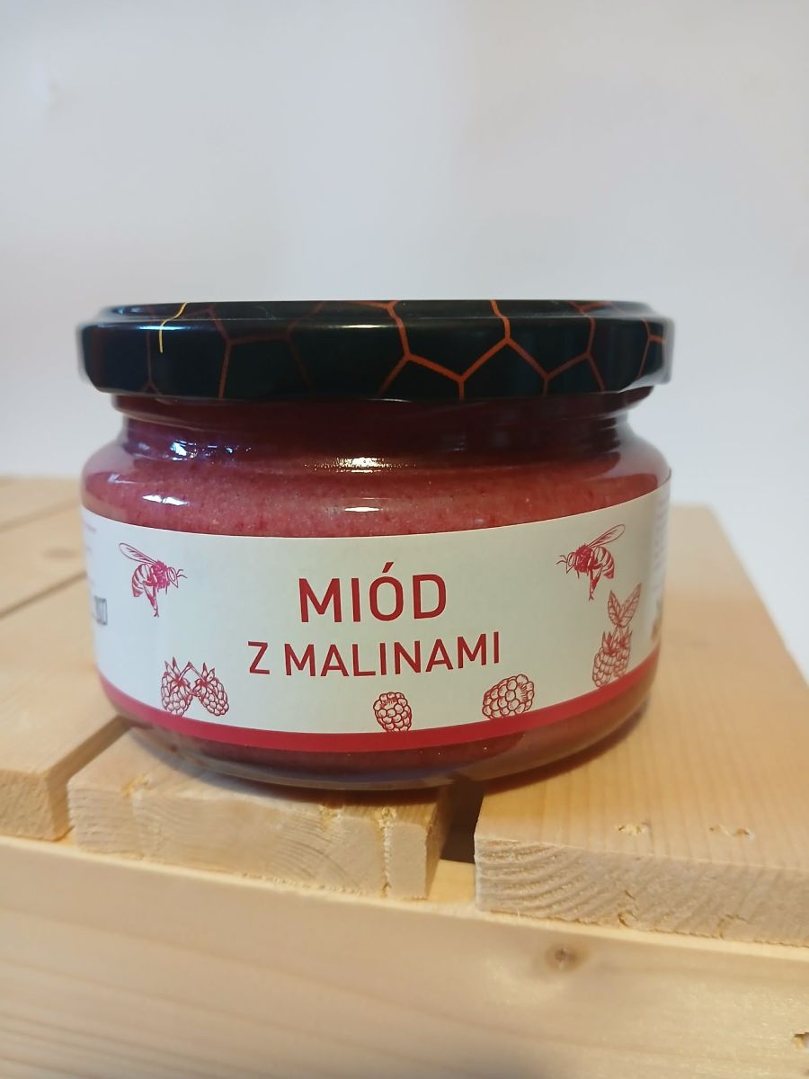 Skład: miód wielokwiatowy, maliny liofilizowane.